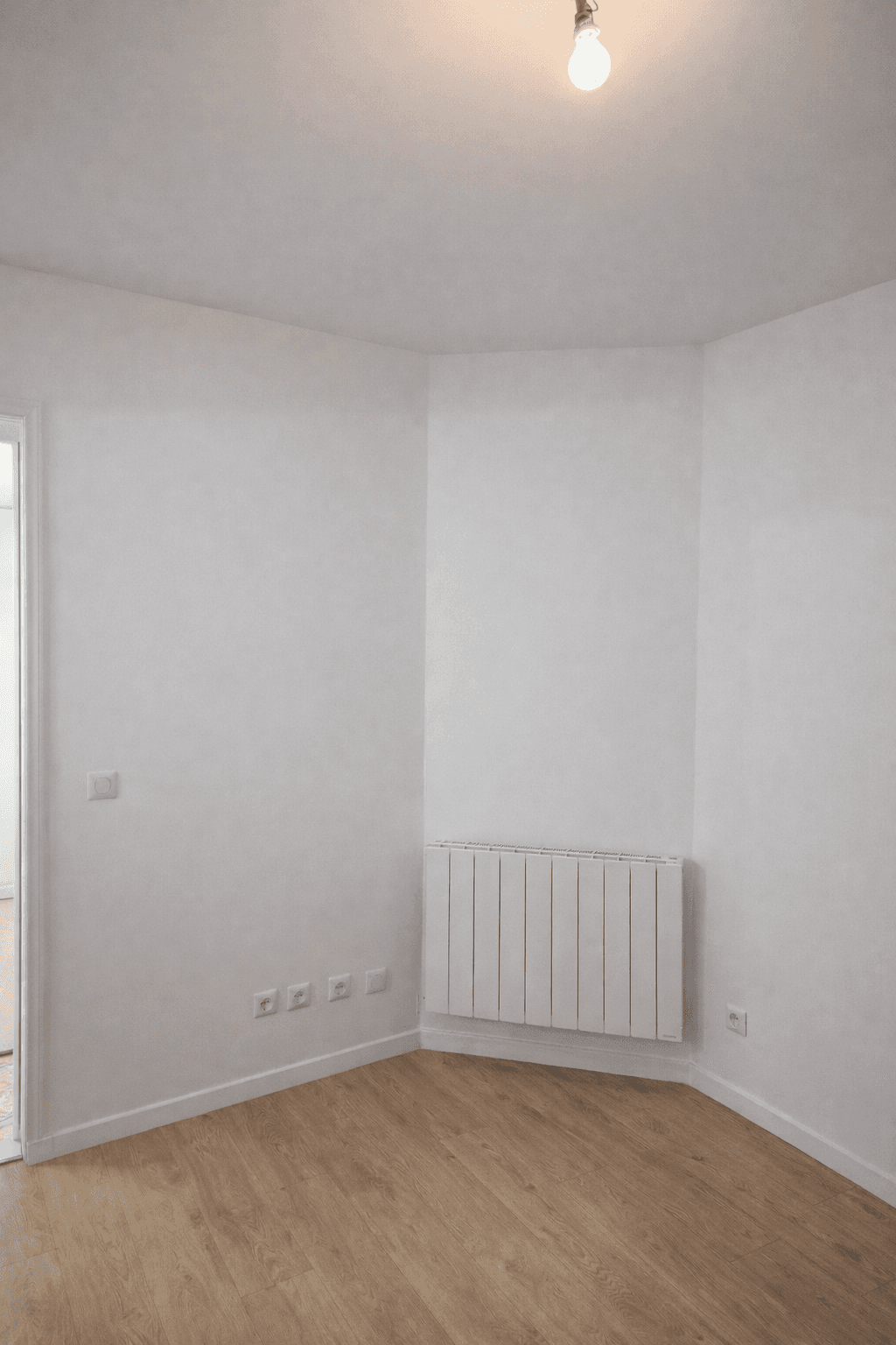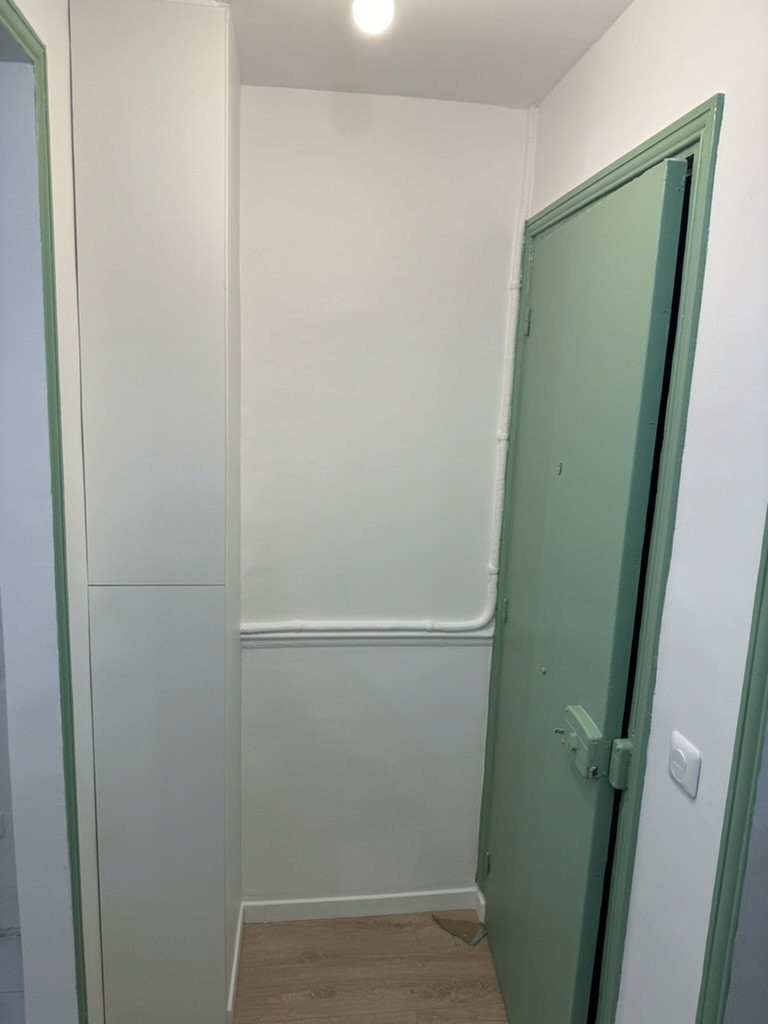 Application d’un enduit et d’une peinture neuve pour un rafraîchissement total de l’appartement.